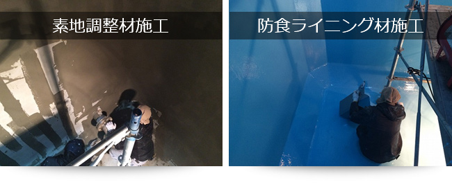 アクアエポシステムは他社にあるような無溶剤型エポキシライニング材と違い、水分散型エポキシ樹脂を使用しているため臭気も少なく、安全な作業が可能で、湿潤接着性にも優れておりご採用くださいました。
