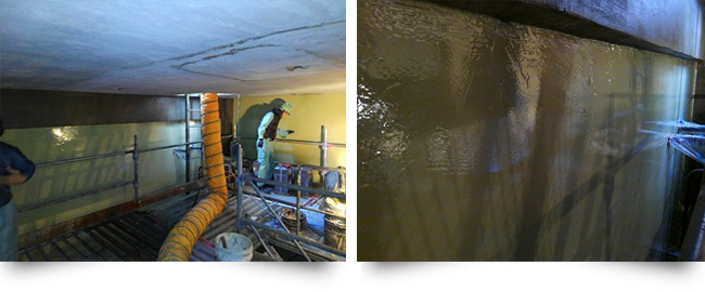 水槽類・地下用のビッグサンGR工法に、耐有機酸性能を持つエポキシ系 防食ライニング材を複合した