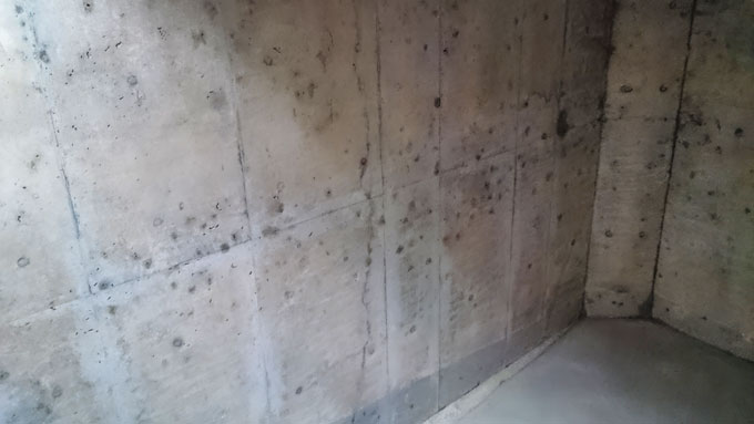 防水層が不十分な場合、中水はコンクリート内部へ徐々に浸透します。