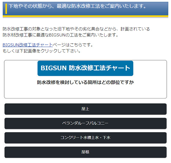 ビッグサン防水改修工法チャートについてはこちらをご覧下さい