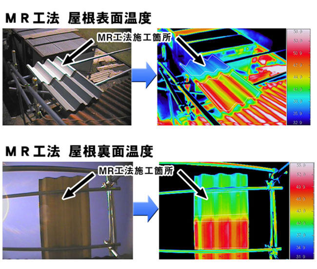 MR工法を行った場合と、非施工箇所とでは表面温度15℃、裏面温度13℃の温度差がありました。