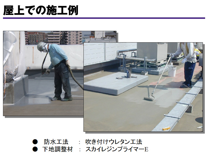 ポリマーセメント系塗膜防水材である、BIGSUN 専用ではなく、ウレタンやFRPなどのあらゆる下地材に適応可能なプライマー。スカイレジン プライマーEをぜひお試し下さい、