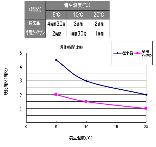 低気温でも即硬性があり、真冬でも工事がはかどる