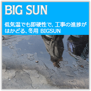冬場の塗膜防水工事や下地補修は乾燥硬化に時間がかかるからと敬遠されていた施工業者の皆様、今年の冬は是非 「冬用ビッグサン」と 「BSラピタル・エース」を一度使ってみてください! きっと施工性にご満足いただけると思います。