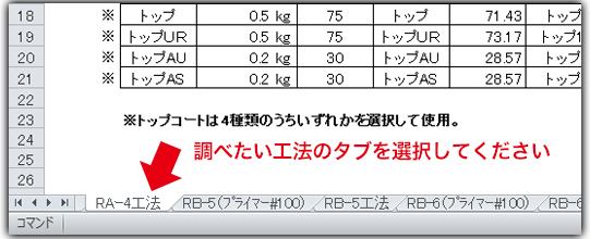 調べたい工法を一番下の「タブ」から選択してください。
