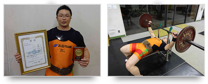 昨年度の第31回全日本実業団パワーリフティング選手権大会でも好成績をおさめ、第49回 岡山市総合体育大会・第15回岡山市ベンチプレス大会 93kg級 にて、みごと優勝をとげています。