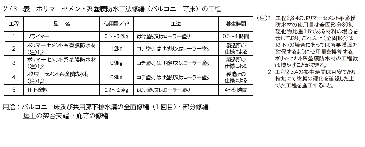 2.7.7 ポリマーセメント系塗膜防水工法(部分修繕)