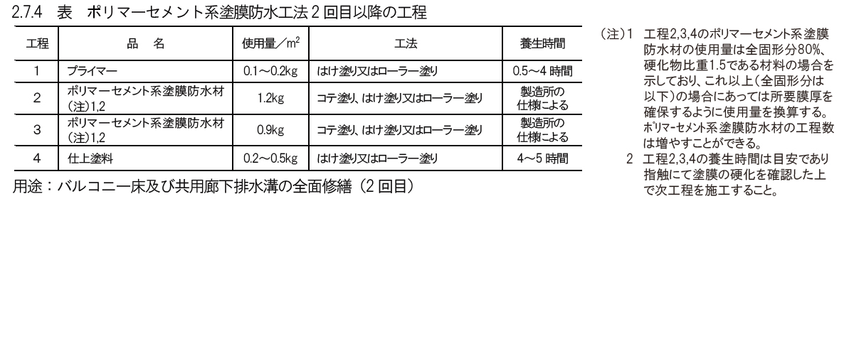 2.7.6 ポリマーセメン卜系塗膜防水工法(全面修繕2回目)